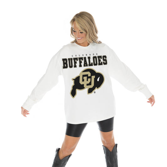 COLORADO BUFFALOES BIG GOALS OVERSIZED MIDWEIGHT LONG SLEEVE TEE WITH RIBBED NECKLINE AND CUFFS