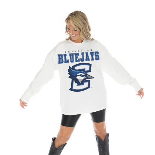 CREIGHTON BLUEJAYS BIG GOALS OVERSIZED MIDWEIGHT LONG SLEEVE TEE WITH RIBBED NECKLINE AND CUFFS