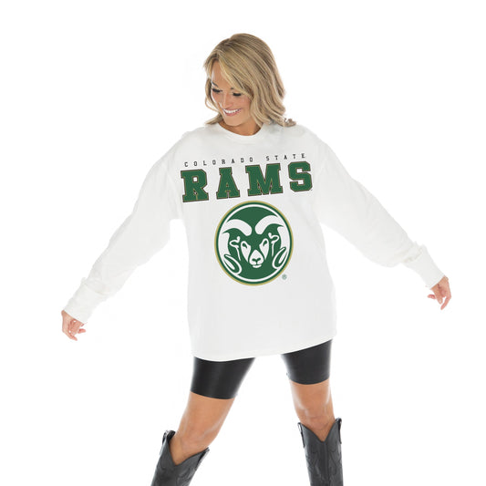 COLORADO STATE RAMS BIG GOALS OVERSIZED MIDWEIGHT LONG SLEEVE TEE WITH RIBBED NECKLINE AND CUFFS