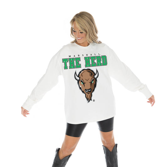 MARSHALL THUNDERING HERD BIG GOALS OVERSIZED MIDWEIGHT LONG SLEEVE TEE WITH RIBBED NECKLINE AND CUFFS
