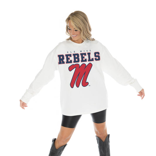 OLE MISS REBELS BIG GOALS OVERSIZED MIDWEIGHT LONG SLEEVE TEE WITH RIBBED NECKLINE AND CUFFS
