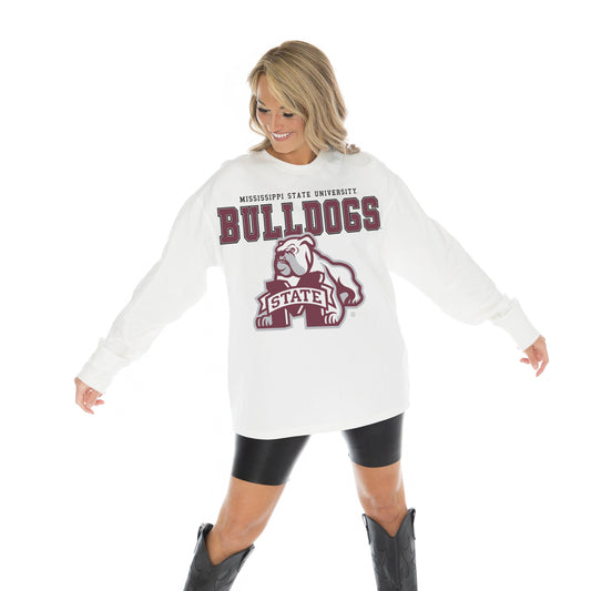 MISSISSIPPI STATE BULLDOGS BIG GOALS OVERSIZED MIDWEIGHT LONG SLEEVE TEE WITH RIBBED NECKLINE AND CUFFS