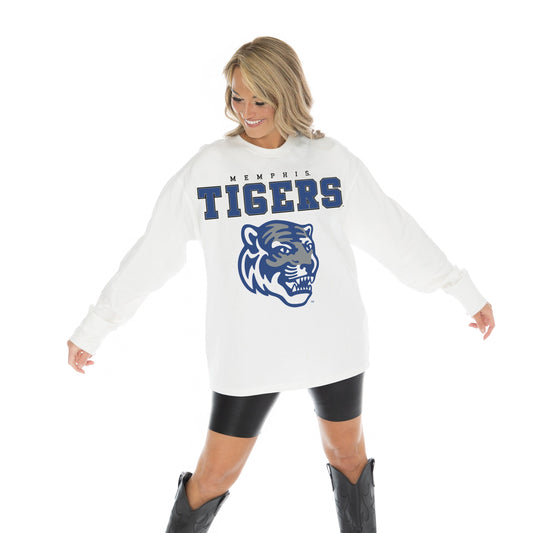 MEMPHIS TIGERS BIG GOALS OVERSIZED MIDWEIGHT LONG SLEEVE TEE WITH RIBBED NECKLINE AND CUFFS
