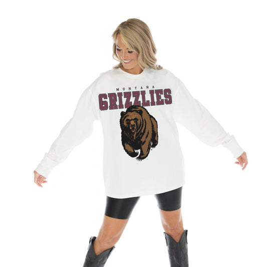 MONTANA GRIZZLIES BIG GOALS OVERSIZED MIDWEIGHT LONG SLEEVE TEE WITH RIBBED NECKLINE AND CUFFS