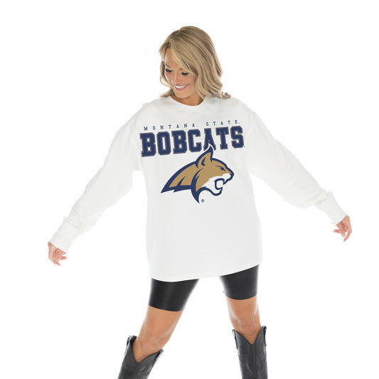 MONTANA STATE BOBCATS BIG GOALS OVERSIZED MIDWEIGHT LONG SLEEVE TEE WITH RIBBED NECKLINE AND CUFFS
