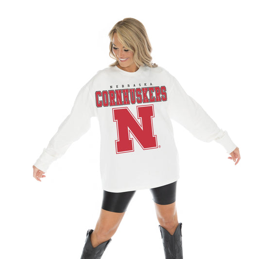 NEBRASKA CORNHUSKERS BIG GOALS OVERSIZED MIDWEIGHT LONG SLEEVE TEE WITH RIBBED NECKLINE AND CUFFS