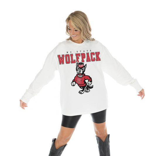 NORTH CAROLINA STATE WOLFPACK BIG GOALS OVERSIZED MIDWEIGHT LONG SLEEVE TEE WITH RIBBED NECKLINE AND CUFFS