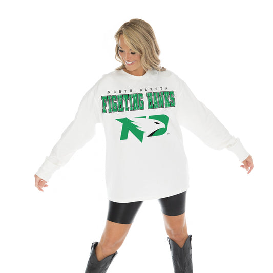 NORTH DAKOTA FIGHTING HAWKS BIG GOALS OVERSIZED MIDWEIGHT LONG SLEEVE TEE WITH RIBBED NECKLINE AND CUFFS