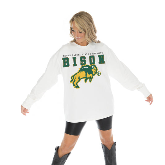 NORTH DAKOTA STATE BISON BIG GOALS OVERSIZED MIDWEIGHT LONG SLEEVE TEE WITH RIBBED NECKLINE AND CUFFS
