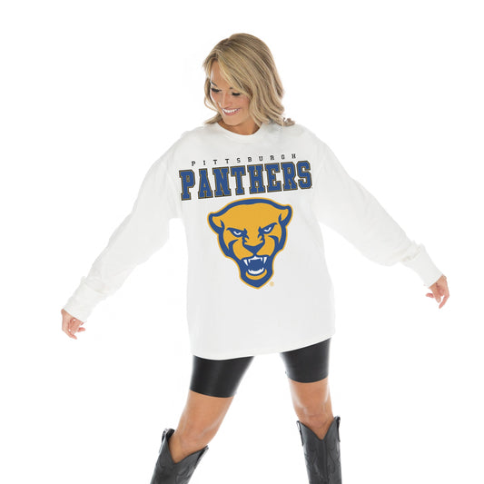 PITTSBURGH PANTHERS BIG GOALS OVERSIZED MIDWEIGHT LONG SLEEVE TEE WITH RIBBED NECKLINE AND CUFFS