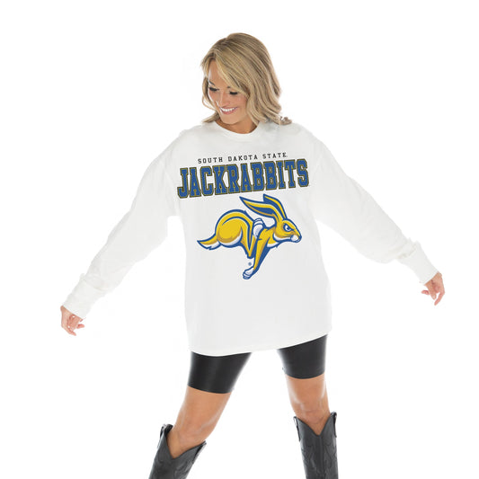 SOUTH DAKOTA STATE JACKRABBITS BIG GOALS OVERSIZED MIDWEIGHT LONG SLEEVE TEE WITH RIBBED NECKLINE AND CUFFS