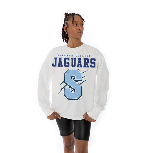 SPELMAN COLLEGE JAGUARS BIG GOALS OVERSIZED MIDWEIGHT LONG SLEEVE TEE WITH RIBBED NECKLINE AND CUFFS