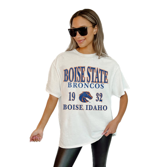 BOISE STATE BRONCOS UNITY RELAXED FIT SHORT SLEEVE CLASSIC CREWNECK TEE WITH RIBBED NECKLINE