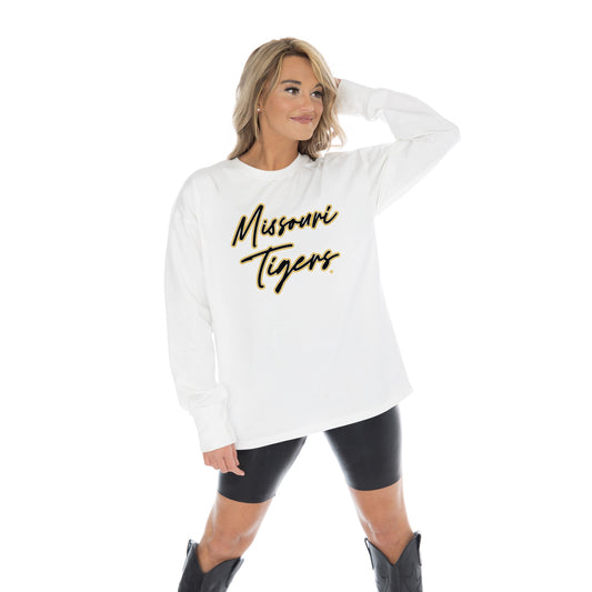 MISSOURI TIGERS CLASSIC COMEBACK OVERSIZED MIDWEIGHT LONG SLEEVE TEE WITH RIBBED NECKLINE AND CUFFS
