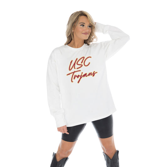 USC TROJANS CLASSIC COMEBACK OVERSIZED MIDWEIGHT LONG SLEEVE TEE WITH RIBBED NECKLINE AND CUFFS