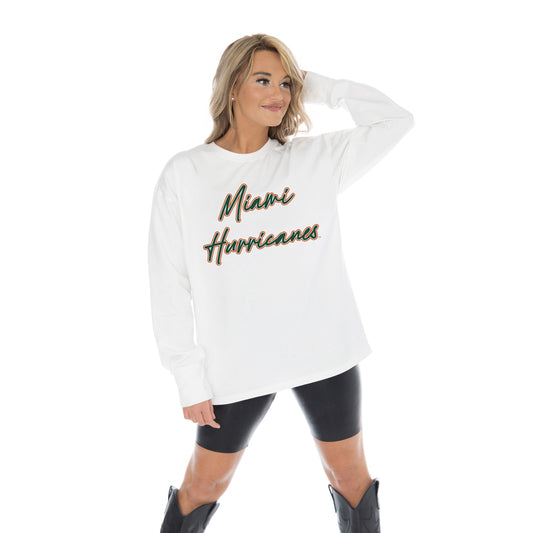 MIAMI HURRICANES CLASSIC COMEBACK OVERSIZED MIDWEIGHT LONG SLEEVE TEE WITH RIBBED NECKLINE AND CUFFS