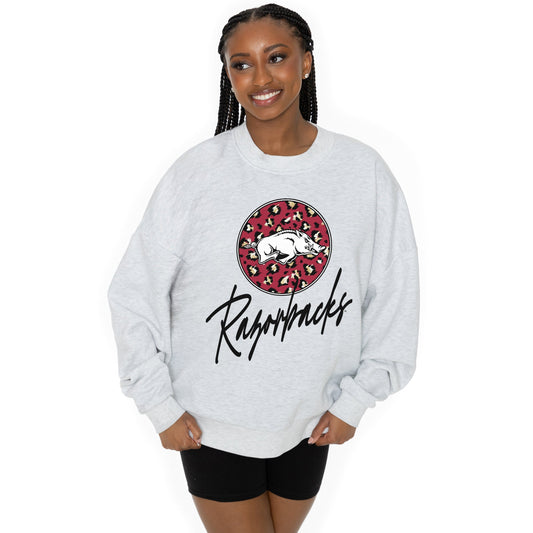 ARKANSAS RAZORBACKS GOING WILD LONG SLEEVE UNISEX FIT PREMIUM FLEECE CREWNECK SWEATSHIRT WITH RIBBED KNIT NECKLINE, WRIST, AND WAISTBAND