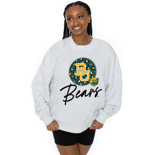 BAYLOR BEARS GOING WILD LONG SLEEVE UNISEX FIT PREMIUM FLEECE CREWNECK SWEATSHIRT WITH RIBBED KNIT NECKLINE, WRIST, AND WAISTBAND