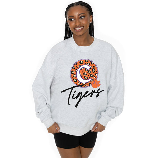 CLEMSON TIGERS GOING WILD LONG SLEEVE UNISEX FIT PREMIUM FLEECE CREWNECK SWEATSHIRT WITH RIBBED KNIT NECKLINE, WRIST, AND WAISTBAND