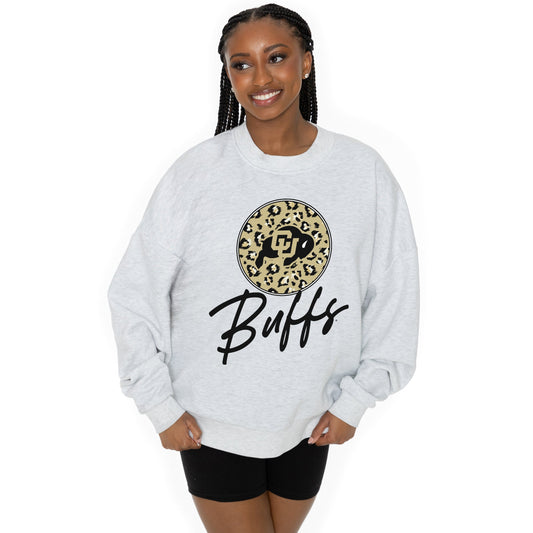 COLORADO BUFFALOES GOING WILD LONG SLEEVE UNISEX FIT PREMIUM FLEECE CREWNECK SWEATSHIRT WITH RIBBED KNIT NECKLINE, WRIST, AND WAISTBAND