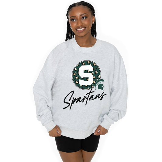 MICHIGAN STATE SPARTANS GOING WILD LONG SLEEVE UNISEX FIT PREMIUM FLEECE CREWNECK SWEATSHIRT WITH RIBBED KNIT NECKLINE, WRIST, AND WAISTBAND