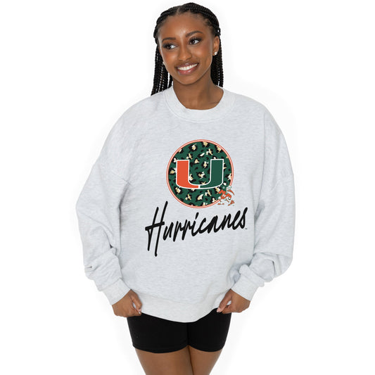MIAMI HURRICANES GOING WILD LONG SLEEVE UNISEX FIT PREMIUM FLEECE CREWNECK SWEATSHIRT WITH RIBBED KNIT NECKLINE, WRIST, AND WAISTBAND