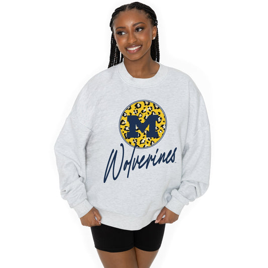 MICHIGAN WOLVERINES GOING WILD LONG SLEEVE UNISEX FIT PREMIUM FLEECE CREWNECK SWEATSHIRT WITH RIBBED KNIT NECKLINE, WRIST, AND WAISTBAND