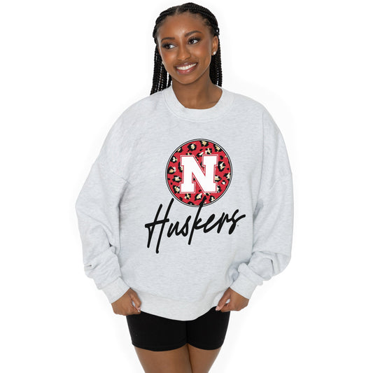 NEBRASKA CORNHUSKERS GOING WILD LONG SLEEVE UNISEX FIT PREMIUM FLEECE CREWNECK SWEATSHIRT WITH RIBBED KNIT NECKLINE, WRIST, AND WAISTBAND
