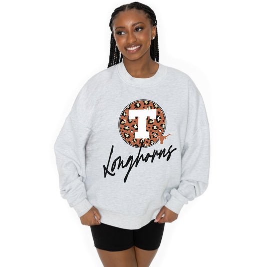 TEXAS LONGHORNS GOING WILD LONG SLEEVE UNISEX FIT PREMIUM FLEECE CREWNECK SWEATSHIRT WITH RIBBED KNIT NECKLINE, WRIST, AND WAISTBAND