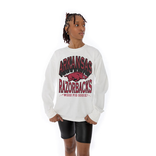 ARKANSAS RAZORBACKS TIME OUT OVERSIZED MIDWEIGHT LONG SLEEVE TEE WITH RIBBED NECKLINE AND CUFFS