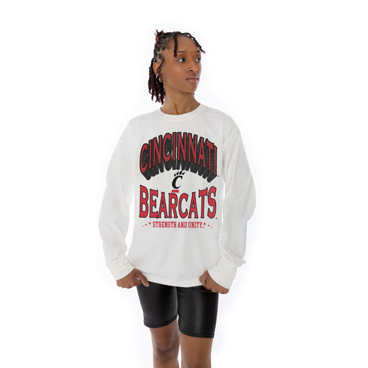CINCINNATI BEARCATS TIME OUT OVERSIZED MIDWEIGHT LONG SLEEVE TEE WITH RIBBED NECKLINE AND CUFFS