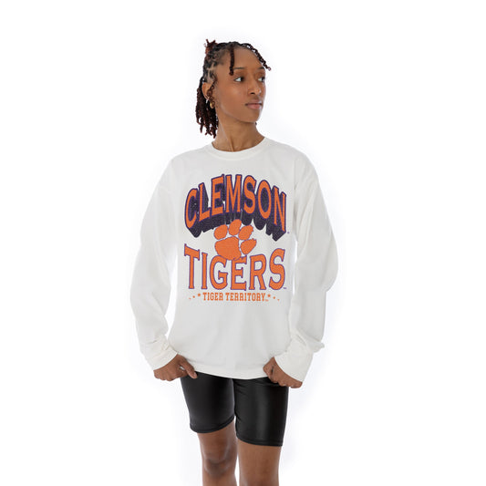 CLEMSON TIGERS TIME OUT OVERSIZED MIDWEIGHT LONG SLEEVE TEE WITH RIBBED NECKLINE AND CUFFS