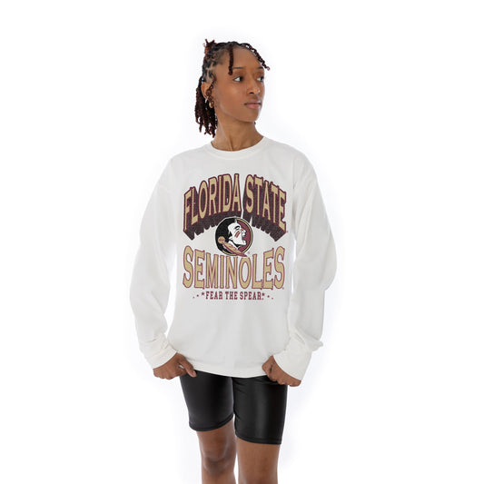 FLORIDA STATE SEMINOLES TIME OUT OVERSIZED MIDWEIGHT LONG SLEEVE TEE WITH RIBBED NECKLINE AND CUFFS