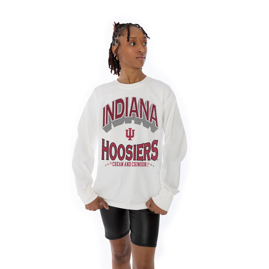 INDIANA HOOSIERS TIME OUT OVERSIZED MIDWEIGHT LONG SLEEVE TEE WITH RIBBED NECKLINE AND CUFFS