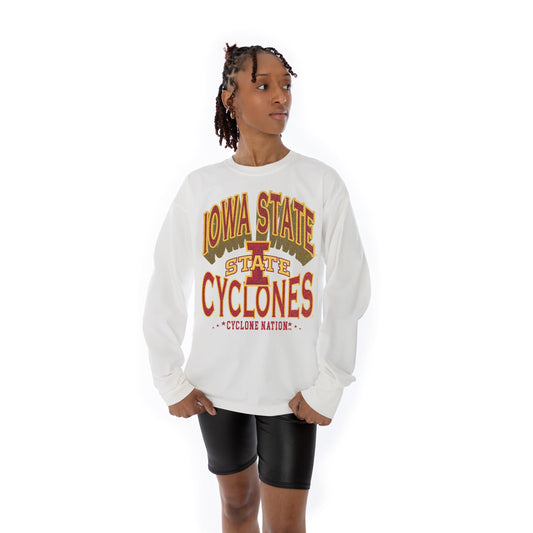 IOWA STATE CYCLONES TIME OUT OVERSIZED MIDWEIGHT LONG SLEEVE TEE WITH RIBBED NECKLINE AND CUFFS