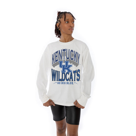 KENTUCKY WILDCATS TIME OUT OVERSIZED MIDWEIGHT LONG SLEEVE TEE WITH RIBBED NECKLINE AND CUFFS