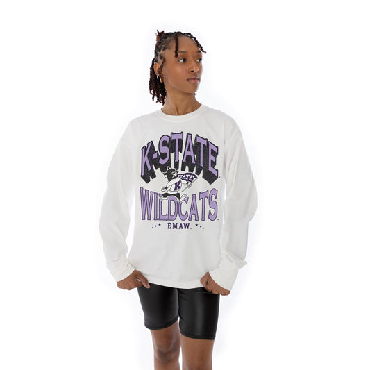 KANSAS STATE WILDCATS TIME OUT OVERSIZED MIDWEIGHT LONG SLEEVE TEE WITH RIBBED NECKLINE AND CUFFS