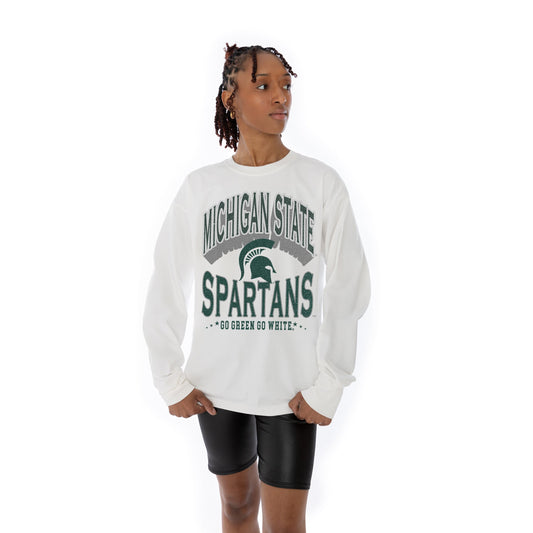 MICHIGAN STATE SPARTANS TIME OUT OVERSIZED MIDWEIGHT LONG SLEEVE TEE WITH RIBBED NECKLINE AND CUFFS