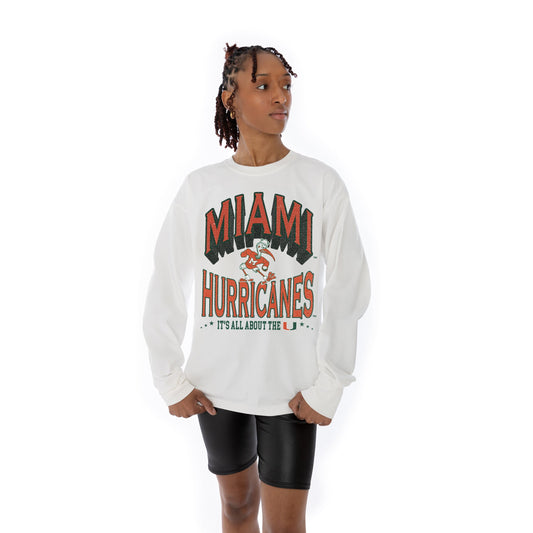 MIAMI HURRICANES TIME OUT OVERSIZED MIDWEIGHT LONG SLEEVE TEE WITH RIBBED NECKLINE AND CUFFS