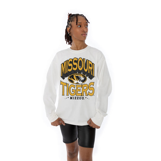 MISSOURI TIGERS TIME OUT OVERSIZED MIDWEIGHT LONG SLEEVE TEE WITH RIBBED NECKLINE AND CUFFS