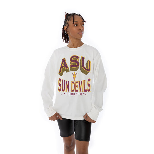 ARIZONA STATE SUN DEVILS TIME OUT OVERSIZED MIDWEIGHT LONG SLEEVE TEE WITH RIBBED NECKLINE AND CUFFS