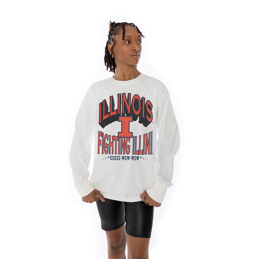 ILLINOIS FIGHTING ILLINI TIME OUT OVERSIZED MIDWEIGHT LONG SLEEVE TEE WITH RIBBED NECKLINE AND CUFFS