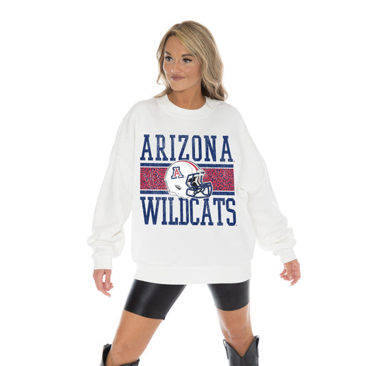 ARIZONA WILDCATS FAIR CATCH LONG SLEEVE UNISEX FIT PREMIUM FLEECE CREWNECK SWEATSHIRT WITH RIBBED KNIT NECKLINE, WRIST, AND WAISTBAND