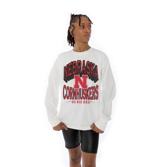 NEBRASKA CORNHUSKERS TIME OUT OVERSIZED MIDWEIGHT LONG SLEEVE TEE WITH RIBBED NECKLINE AND CUFFS