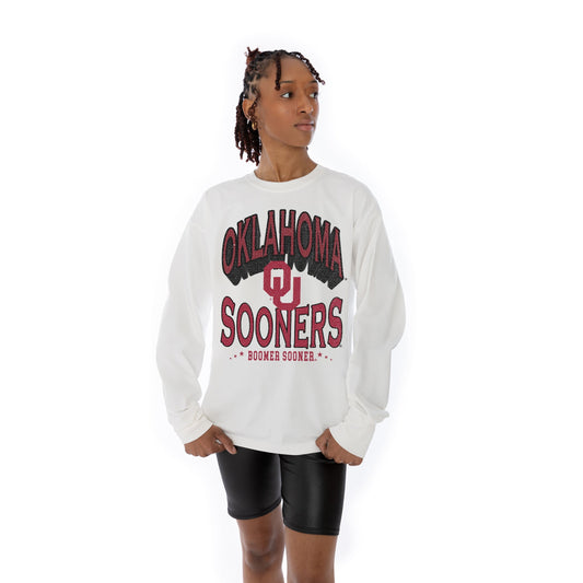 OKLAHOMA SOONERS TIME OUT OVERSIZED MIDWEIGHT LONG SLEEVE TEE WITH RIBBED NECKLINE AND CUFFS