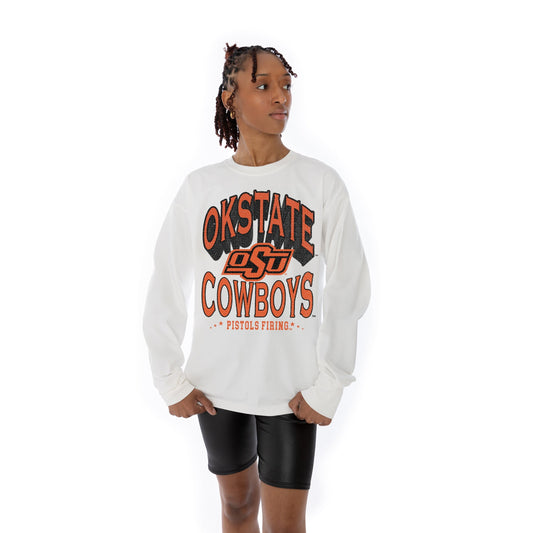 OKLAHOMA STATE COWBOYS TIME OUT OVERSIZED MIDWEIGHT LONG SLEEVE TEE WITH RIBBED NECKLINE AND CUFFS