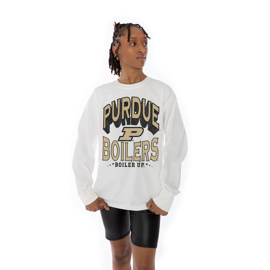 PURDUE BOILERMAKERS TIME OUT OVERSIZED MIDWEIGHT LONG SLEEVE TEE WITH RIBBED NECKLINE AND CUFFS