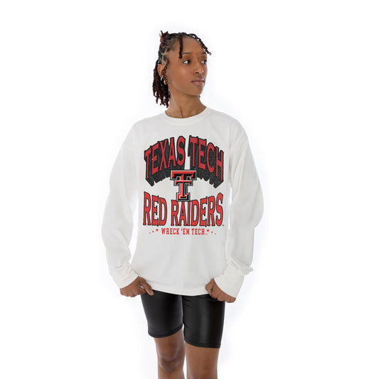 TEXAS TECH RED RAIDERS TIME OUT OVERSIZED MIDWEIGHT LONG SLEEVE TEE WITH RIBBED NECKLINE AND CUFFS