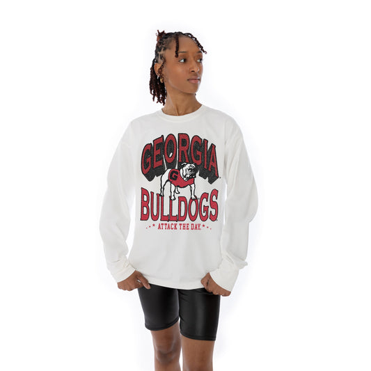 GEORGIA BULLDOGS TIME OUT OVERSIZED MIDWEIGHT LONG SLEEVE TEE WITH RIBBED NECKLINE AND CUFFS