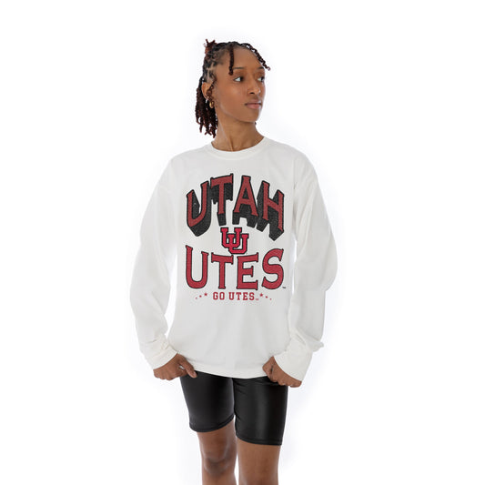 UTAH UTES TIME OUT OVERSIZED MIDWEIGHT LONG SLEEVE TEE WITH RIBBED NECKLINE AND CUFFS